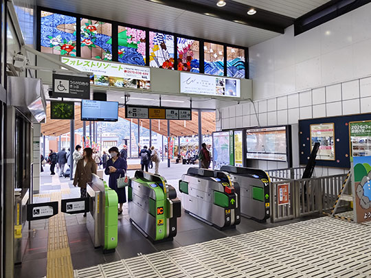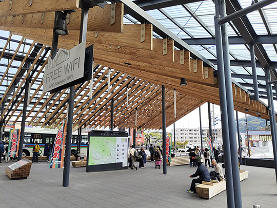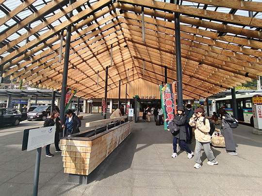 ด้านหน้าอาคารสถานีเป็นลานกว้างที่มีหลังคาใสปกคลุมอยู่