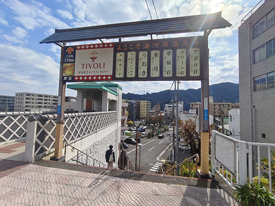 ตรงนี้เป็นทางไปยังโรงงานขนมตีโวลี (ちぼりスイーツファクトリー) ซึ่งก็เป็นที่เที่ยวสำคัญของเมืองนี้เหมือนกัน แต่ว่าเรายังไม่ไปตอนนี้ แต่แวะไปตอนท้ายสุด