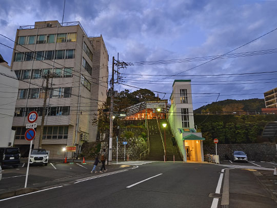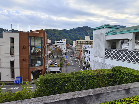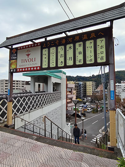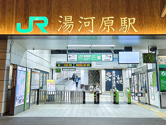 บริเวณสถานียุงาวาระเป็นพื้นที่สูง จากหน้าสถานีเป็นทางลาดลงไป