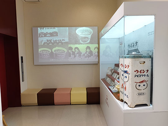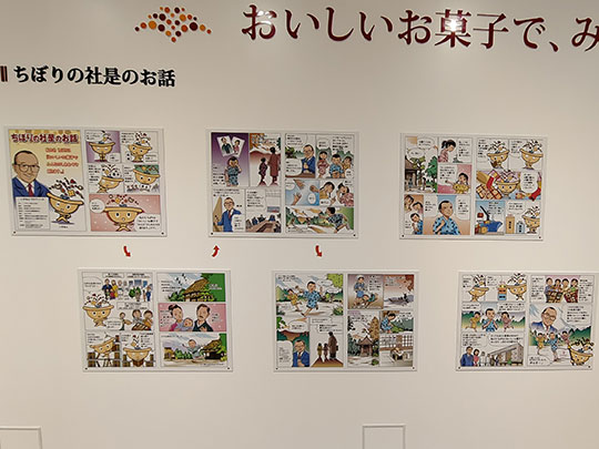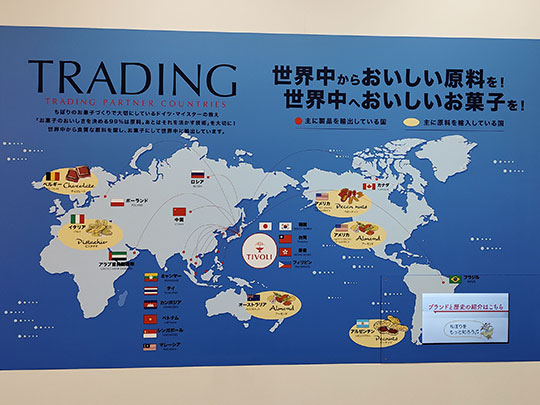 นอกจากนี้แล้วยังมีกำแพงกระจกให้มองเข้าไปเห็นบริเวณโรงงานที่คนกำลังผลิตขนมอยู่ด้วย แต่ว่าเขาห้ามถ่ายรูปในโรงงาน