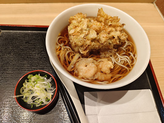 โซบะใส่กุ้งกับคากิอาเงะชามนี้ราคา ๗๒๐ เยน