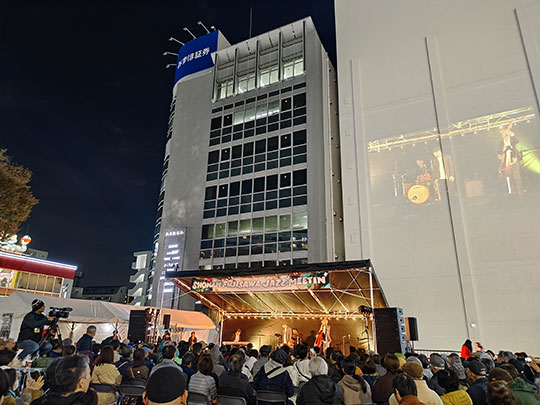กินเสร็จแล้วก่อนกลับก็ออกมาเดินตรงทางลอยด้านหน้าสถานีสักหน่อย ก็เจอเขากำลังจัดงานแสดงแจ๊ซกันอยู่