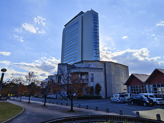 ส่วนด้านหลังที่เห็นเป็นตึกสูงนั้นเป็นที่ว่าการเมืองทากาซากิ สูง ๑๐๒.๕ เมตร เป็นอาคารที่สูงที่สุดในเมืองทากาซากิ และเป็นอันดับ ๒ ในจังหวัดกุมมะ