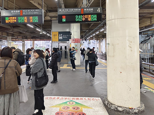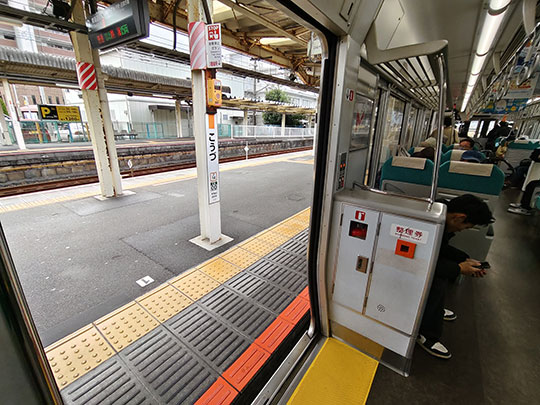 ระหว่างรอเปลี่ยนรถไฟมีเวลาก็เดินออกมาดูตรงที่ตรวจตั๋วสักหน่อย แต่ว่าไม่ได้ออกไป ครั้งนี้เป็นการเปลี่ยนรถไฟภายในบริษัทเดียวกันคือ JR เหมือนกันจึงไปต่อได้โดยตรงเลย ดังนั้นจึงไม่ได้ออกไปเห็นสภาพเมืองด้านนอก