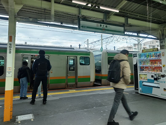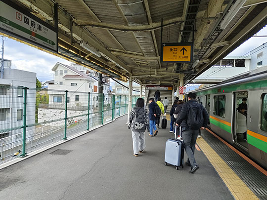 เราเริ่มออกเดินทางจากสถานีฟุจิซาวะ (藤沢駅ふじさわえき) ในเมืองฟุจิซาวะ (藤沢市ふじさわし) ขึ้นรถไฟรอบ 9:48 แบบเร็ว ที่มีปลายทางที่สถานีโอดาวาระซึ่งเป็นสถานีหลักของเมืองโอดาวาระ