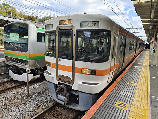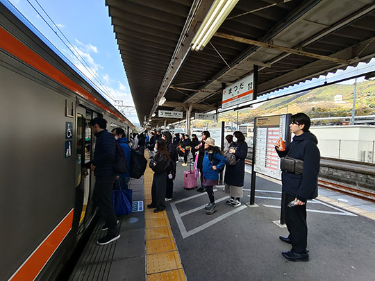 รถไฟมาจอดที่สถานีมัตสึดะ (松田駅まつだえき) เห็นคนขึ้นมาเพียบ คาดได้ว่าคงมีไม่น้อยที่มาต่อรถไฟที่สถานีนี้