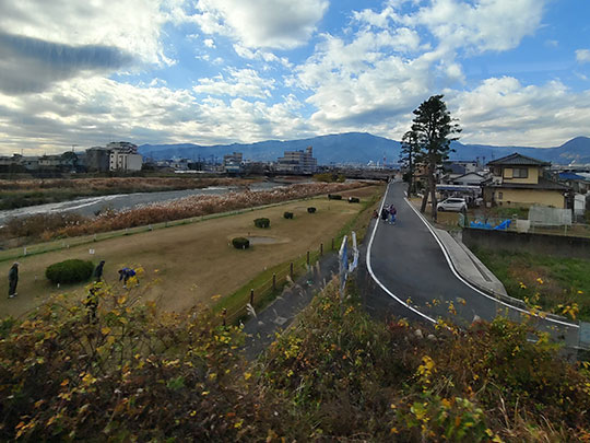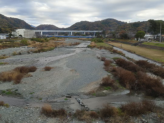 หลังจากนั้นรถไฟก็ข้ามผ่านแม่น้ำซางามิ (相模川さがみがわ) ที่พาดผ่านกลางจังหวัดคานางาวะ
