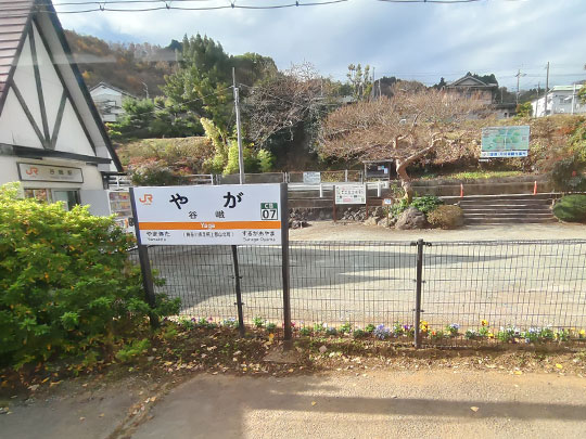 ถัดมาคือสถานียางะ (谷峨駅やがえき) ซึ่งเป็นสถานีสุดท้ายภายในเมืองยามากิตะและจังหวัดคานางาวะ ก่อนที่จะเข้าสู่จังหวัดชิซึโอกะ