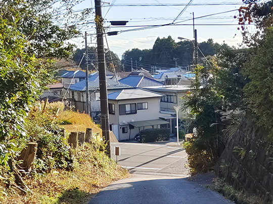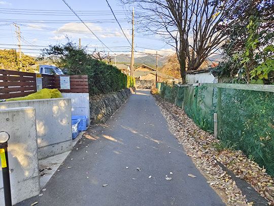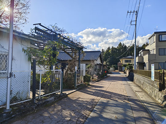 เดินลงมาทางใต้ภายในย่านโควยามะต่อ แถวนี้มีบ้านเรียงรายอยู่อย่างหลวมๆ บ้างก็มีสวนและท้องนาด้วย
