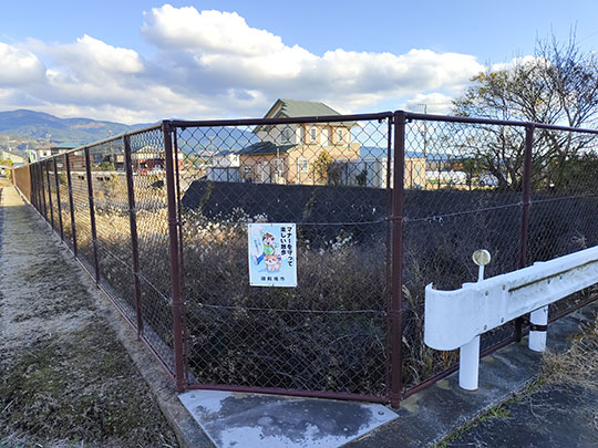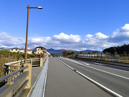 ตรงนี้คือสะพานชินนิชิกาวะ (新西川橋しんにしかわばし) ซึ่งข้ามแม่น้ำคุโบะกลับไปยังฝั่งตะวันตก โดยฝั่งตรงข้ามแม่น้ำเมื่อข้ามสะพานนี้ไปก็คือเขตของเมืองสึโซโนะที่เป็นเป้าหมายแล้ว