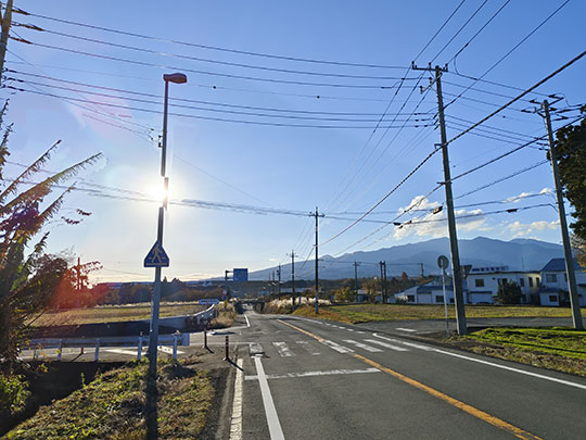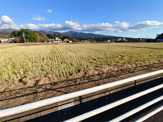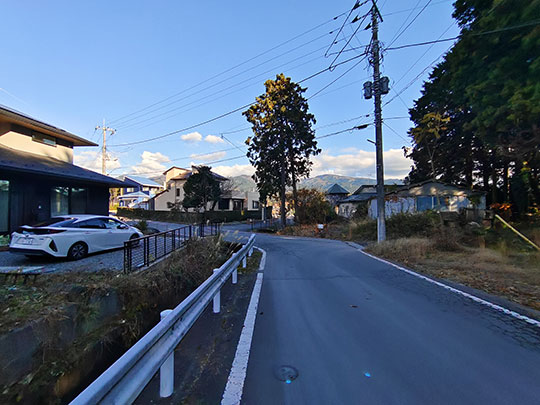 ในตอนนี้เป็นการเดินระยะไกลเพื่อข้ามเมืองไปยังเป้าหมายต่อไปซึ่งอยู่ในเมืองสึโซโนะ (裾野市すそのし) ที่อยู่ถัดไปทางใต้จากเมืองโกเตมบะ ที่จริงตอนแรกไม่ได้ตั้งใจจะเดิน เพราะค่อนข้างไกลอยู่ นั่งรถไฟไปจะสะดวกกว่า แต่เห็นว่าถ้ำลมโคมากาโดะก็ถือว่าลงมาทางใต้จากสถานีมากแล้ว ก็เลยไม่อยากอุตส่าห์เดินย้อนกลับไปทางเหนือเพื่อจะมาขึ้นรถไฟลงไปทางใต้ต่อ ผลก็คือทำให้เราต้องเดินไกลเป็นระยะทางถึง ๔.๕ กิโลเมตร ใช้เวลาไปประมาณ ๑ ชั่วโมง ๒๐ นาที