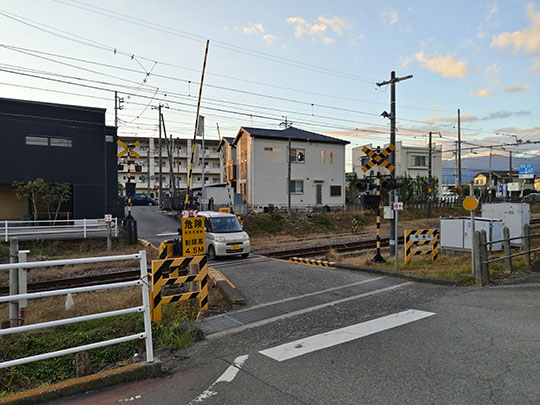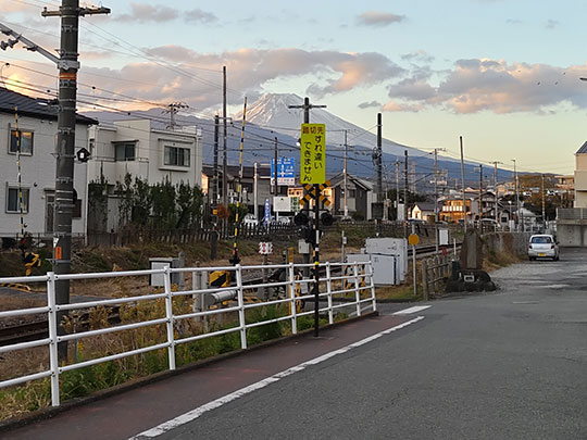 ระหว่างทางก็ผ่านจุดข้ามทางรถไฟที่มีภูเขาฟุจิเป็นฉากหลัง