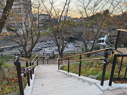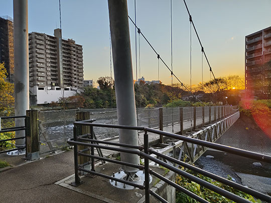 สะพานที่พาดข้ามแม่น้ำคิเสะที่กั้นระหว่างเมืองนางาอิซึมิกับเมืองนุมาซึ ระหว่างเดินผ่านก็สั่นไหวหวาดเสียวอยู่