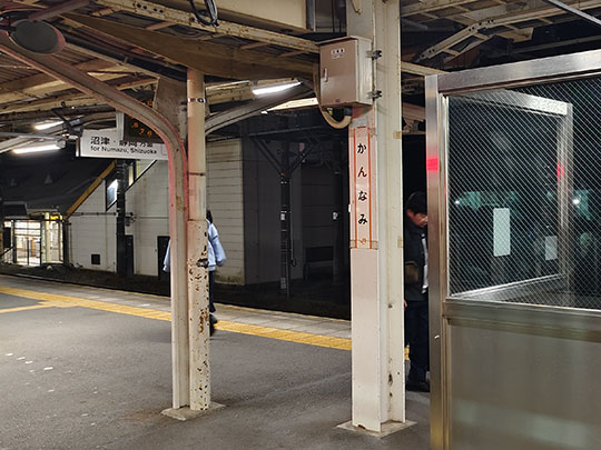แล้วก็ขึ้นรถไฟมา ระหว่างทางมีจอดครั้งนึงที่สถานีคันนามิ (函南駅かんなみえき) ในเมืองคันนามิ (函南町かんなみちょう) ที่อยู่ระหว่างเมืองมิชิมะกับเมืองอาตามิ