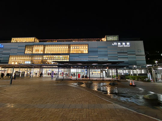 ครั้งนี้ที่จริงเราจะไม่แตะบัตรออกจากสถานีก็ได้ แต่ถ้าทำแบบนั้นก็จะกลายเป็นการใชับัตรข้ามเขตแล้วก็จะต้องไปเจอปัญหาที่สถานีปลายทาง ก็เลยแตะบัตรออกตรงนี้ตัดปัญหาไป และอีกอย่างคืออยากจะออกมาเดินหาอะไรกินเป็นมื้อเย็นสักหน่อยก่อนกลับ ไหนๆก็แวะมาแล้ว เมืองอาตามิก็ถือเป็นที่ท่องเที่ยวชื่อดังอยู่ด้วย แต่ครั้งนี้มาถึงก็มืดแล้ว ไม่ได้มีเวลาไปเที่ยวอะไร