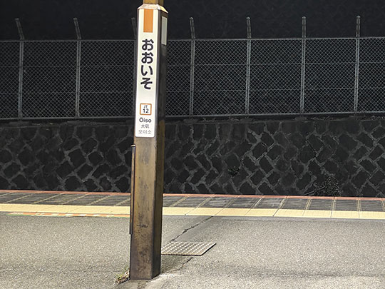 ถัดมาเป็นสถานีโออิโสะ (大磯駅おおいそえき) ในเมืองโออิโสะ (大磯町おおいそまち) ก็เป็นเมืองเล็กๆอีกเมือง และเป็นสถานีที่รถไฟด่วนไม่จอด