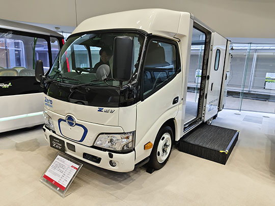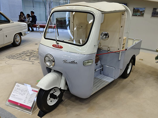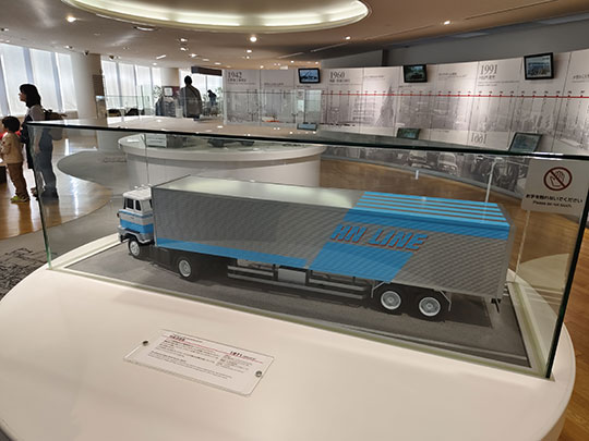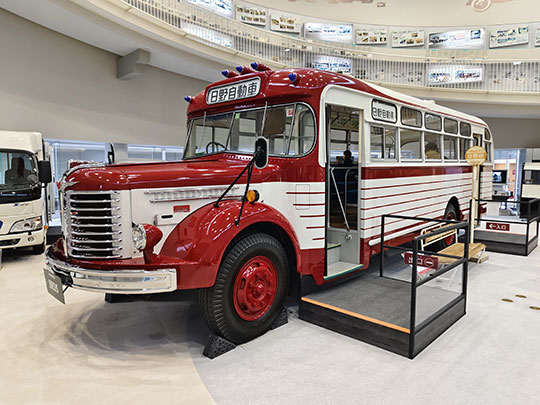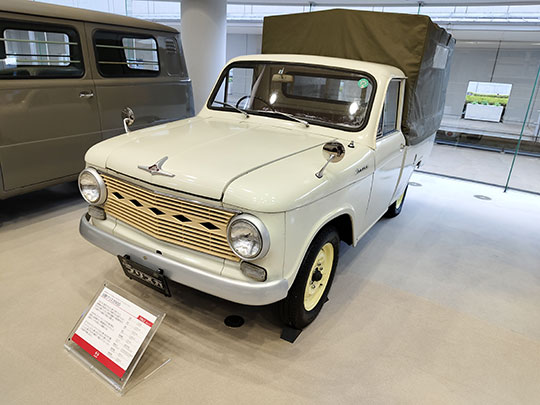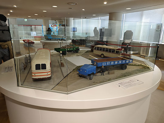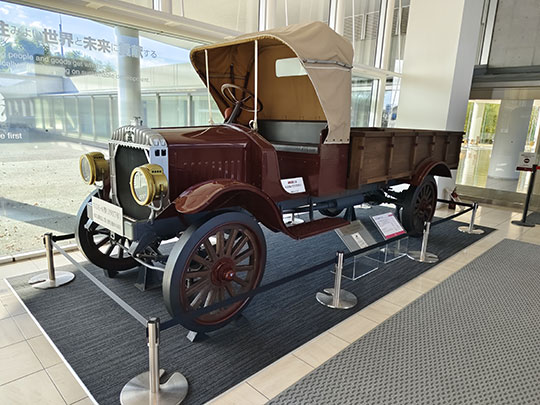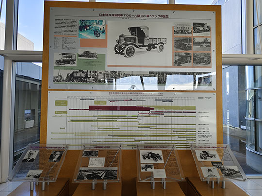 จากนั้นเดินเข้ามาในอาคาร เมื่อเข้ามาก็เห็นรถเก่าที่ตั้งเด่นอยู่ รถนี้คือรถบรรทุกรุ่น TGE-A ที่เริ่มผลิตขึ้นในปี 1917 โดยบริษัทการไฟฟ้าและอุตสาหกรรมก๊าซโตเกียวซึ่งเป็นบริษัทที่มาของฮิโนะ