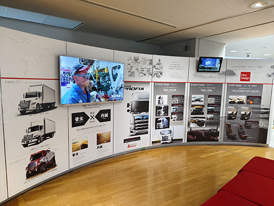 เริ่มชมจากบริเวณชั้น ๒ ภายในนี้มีจักแสดงแบบจำลองรถต่างๆของฮิโนะตั้งแต่อดีตมา