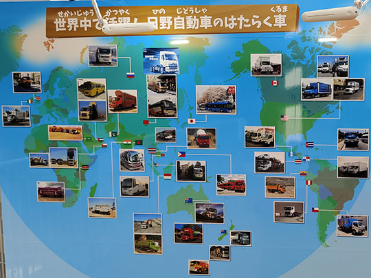 แผนที่แสดงรถฮิโนะที่วิ่งอยู่ในประเทศต่างๆทั่วโลก ในไทยก็มี