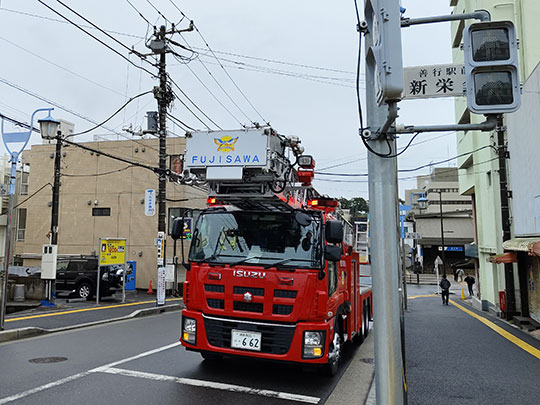 ระหว่างทางเจอรถดับเพลิงของเมืองฟุจิซาวะด้วย