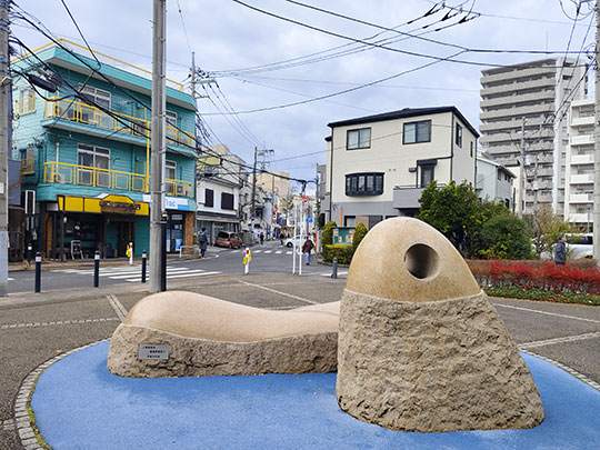 ไม่ไกลจากร้านเกี๊ยวซ่านักมีหินหน้าตาแปลกๆ ตรงนี้ไม่ได้เป็นแลนด์มาร์กอะไร แต่เป็นแค่ทางเข้าย่านบ้านเช่าชื่อว่า