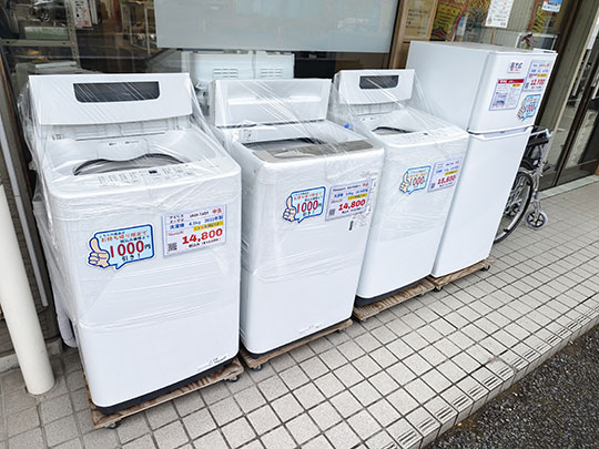หน้าร้านมีพวกเครื่องซักผ้ามือสองขายราคาถูกทีเดียว