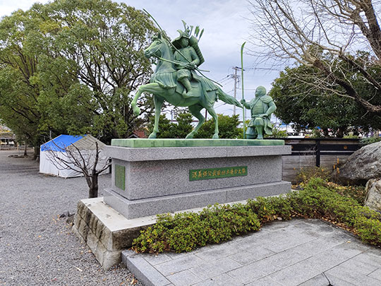 รูปปั้นโยชิตสึเนะขี่ม้าและเบงเกย์