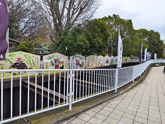 จากนั้นลองเดินดูข้างๆศาลเจ้า ตรงนี้มีแผ่นป้ายวาดภาพสวยๆไว้เต็มทาง