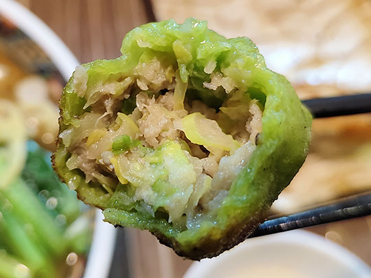 สุดท้ายที่เป็นสีธรรมดาเหมือนเกี๊ยวซ่าทั่วไปนี้คือจุเงมุเกี๊ยวซ่า ใส่กะหล่ำปลีและเนื้อหมู