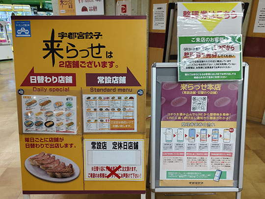 来らっせ) ซึ่งเป็นร้านที่ทำเป็นศูนย์อาหารที่มีร้านเกี๊ยวซ่าชื่อดังหลายแห่งมาเปิดรวมตัวกันอยู่ ก็เลยถือเป็นจุดหมายสำหรับนักท่องเที่ยวที่มาอุตสึโนมิยะเพื่อเดินหาเกี๊ยวซ่า