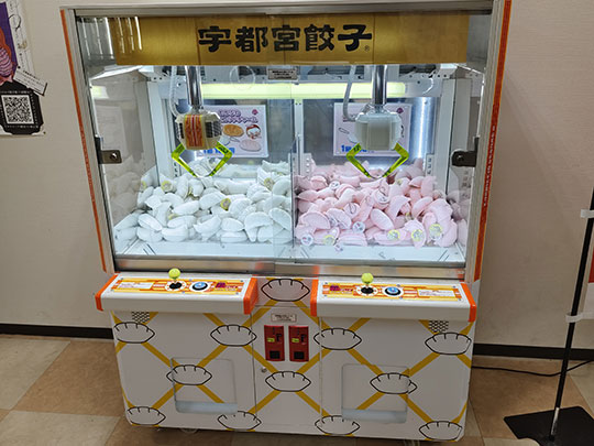 ที่น่าสนใจคือมีให้คีบตุ๊กตาเกี๊ยวซ่าด้วย สมกับเป็นเมืองแห่งเกี๊ยวซ่า แม้แต่ตู้คีบตุ๊กตาก็ยังคีบเกี๊ยวซ่าได้