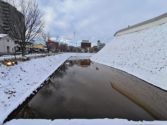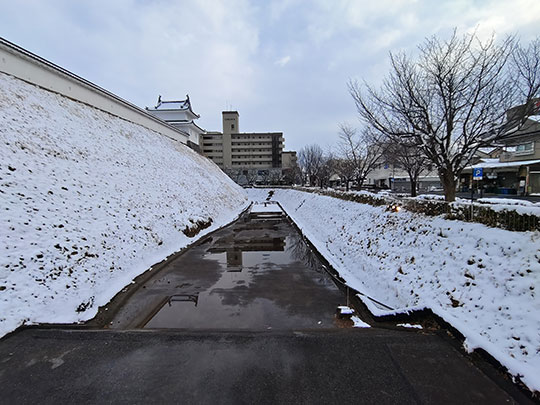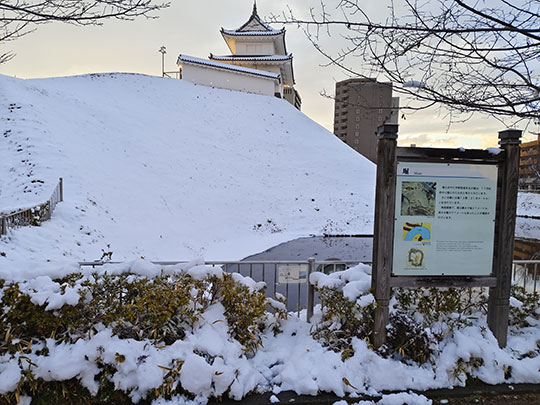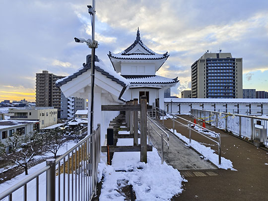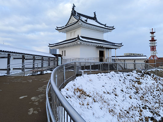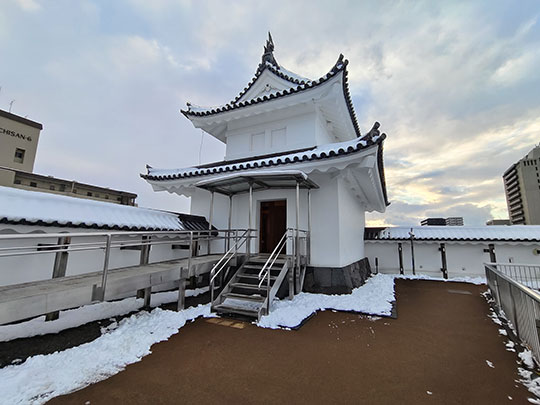 มองไปทางซ้ายมีป้อมฝั่งใต้ ฟุจิมิยางุระ (富士見櫓ふじみやぐら)