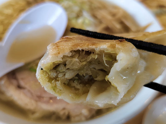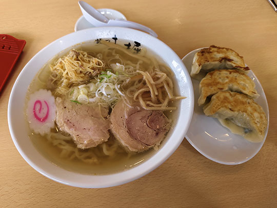 สั่งราเมงแบบใส่ขิง แล้วก็เกี๊ยวซ่าด้วย ราเมงอร่อยดี แต่ว่าเกี๊ยวซ่าเฉยๆ และรู้สึกว่าชิ้นใหญ่ไปหน่อยจนกินยาก