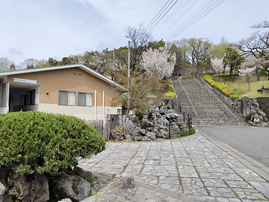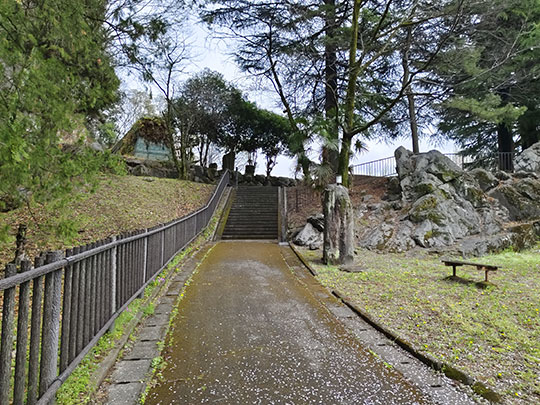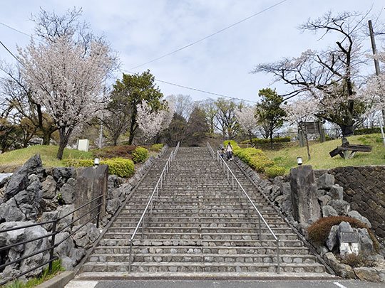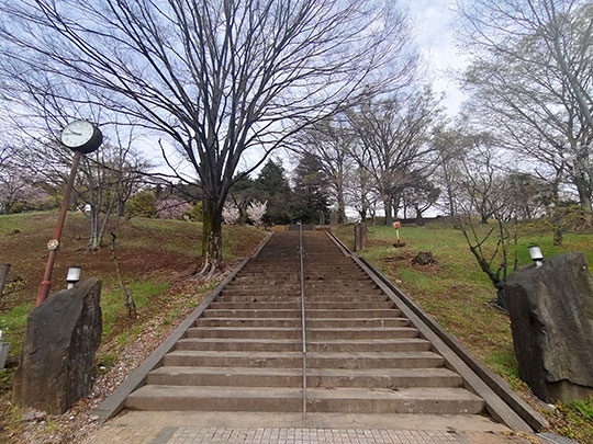 เดินมาตามทางเรื่อยๆก็เห็นบันไดทางขึ้นไปสู่สวนสาธารณะคาตายามะ