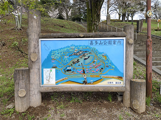 ตอนนี้ได้เวลาเริ่มการเดินเที่ยวแถวนี้ โดยเป้าหมายหลักอยู่ที่สวนสาธารณะคาตายามะ (嘉多山公園かたやまこうえん) ซึ่งเป็นจุดชมซากุระขึ้นชื่อแห่งหนึ่งของเมืองซาโนะ