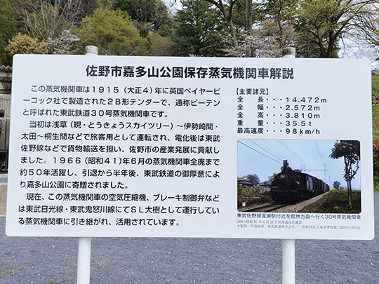 ป้ายอธิบายเกี่ยวประวัติของรถไฟตู้นี้ เริ่มถูกใช้มาตั้งแต่ปี 1915 แล้วหยุดใช้ไปในปี 1966 หลังจากนั้นก็ส่งมอบให้ทางสวนสาธารณะนี้มาวางแสดง
