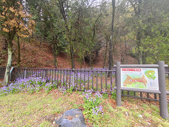 ตรงนี้มีทุ่งดอกไม้สีม่วง แต่ว่าปิดอยู่ไม่ให้เข้า แผนที่ทางขวาแสดงตำแหน่งพื้นที่ที่ปิดไม่ให้ผ่านเข้าไป