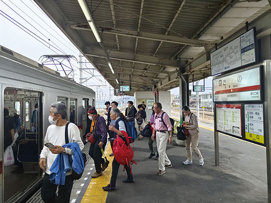 เข้ามานั่งรถไฟสายซาโนะกลับ รถไฟที่ขึ้นนี้เป็นรอบ 14:08