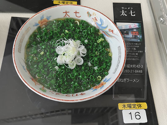 มีการจัดแสดงแบบจำลองชามราเมงของพวกร้านดังด้วย