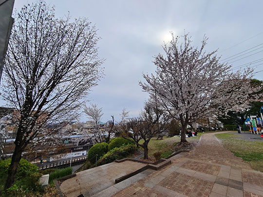 จากนั้นก็ใกล้เวลารถไฟออก ก็เดินเข้ามาในชานชลา ระหว่างรอรถไฟมองไปทางสวนสาธารณะชิโรยามะก็เห็นทิวทัศน์สวยดี