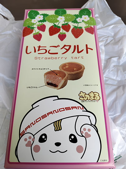 อิจิโงะทาร์ต (いちごタルト) ราคา ๘๐๐ เยน ที่ซื้อในร้านของฝากเมื่อครู่ ดูแล้วน่ากินและปกเป็นรูปซาโนะมารุน่ารักก็เลยตัดสินใจเลือกซื้ออันนี้ เอาไว้เป็นของฝาก