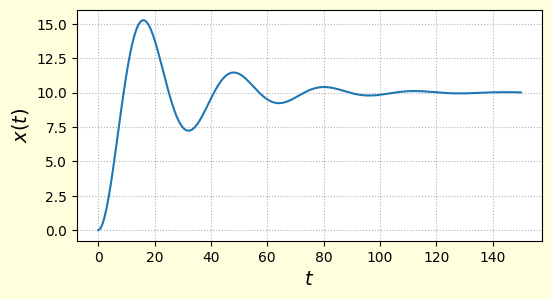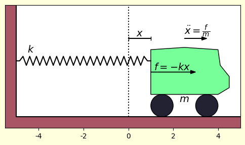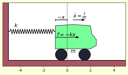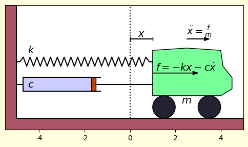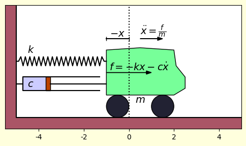 เป็นค่าคงตัวเข้ามายังตัวรถ ซึ่งหมายความว่านอกจากจะมีแรงจากสปริงและตัวหน่วงแล้วเรายังออกแรงเสริมคงที่ให้กับรถอีก ก็จะได้สมการการเคลื่อนที่เป็นแบบนี้
