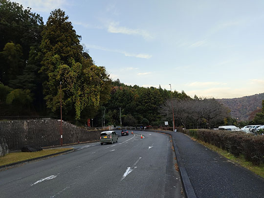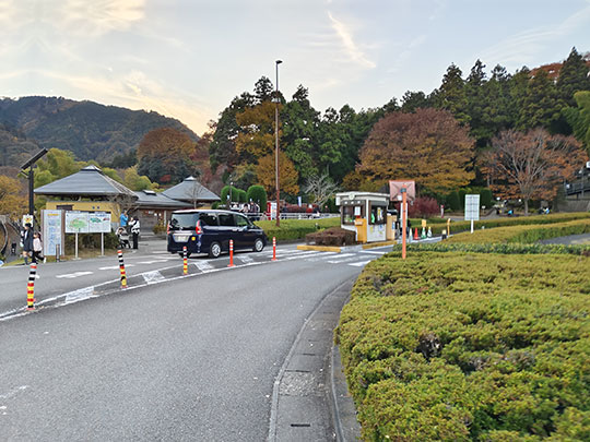 เดินผ่านที่จอดรถออกมาจากสวนสาธารณะ แล้วไปตามทางเพื่อย้อนกลับไปยังป้ายรถเมล์ฮัมบาระที่เรามาลงตอนแรก