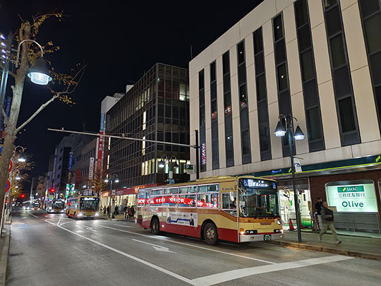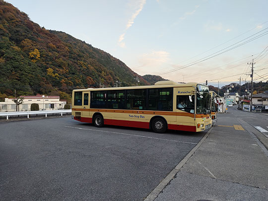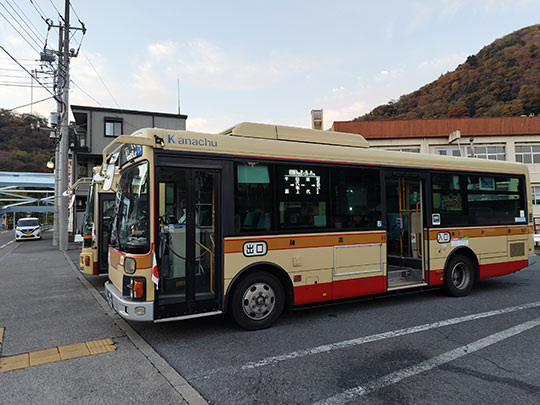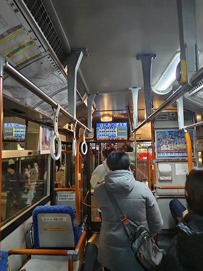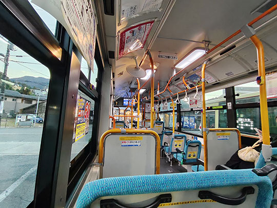 แต่ว่ารถเมล์ที่จะกลับไปยังสถานีฮงอัตสึงินั้นต้องรออีกนานถึงจะมา จังหวะไม่ดีนัก เลยตัดสินใจนั่นรถเมล์สาย 田01 ซึ่งมาจอดอยู่ตรงนั้นและกำลังเตรียมจะออกไปพอดี รถเมล์นี้มีปลายทางอยู่ที่ย่าน