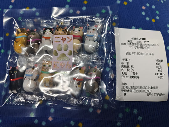 ราคา ๖๐๐ เยน แต่เห็นแมวน่ารักก็เลยเผลอซื้อมาจนได้ เอาไว้ใช้เป็นของฝาก (ภาพนี้ถ่ายบนรถเมล์ขากลับ)