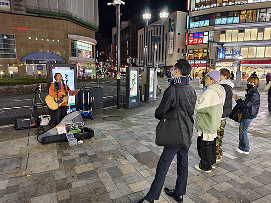 ที่หน้าสถานีเห็นมีคนมาเล่นดนตรีอยู่ด้วย