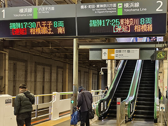มาขึ้นรถไฟที่วิ่งไปทางโยโกฮามะ ปลายทางอยู่ที่สถานีฮิงาชิคานางาวะ (