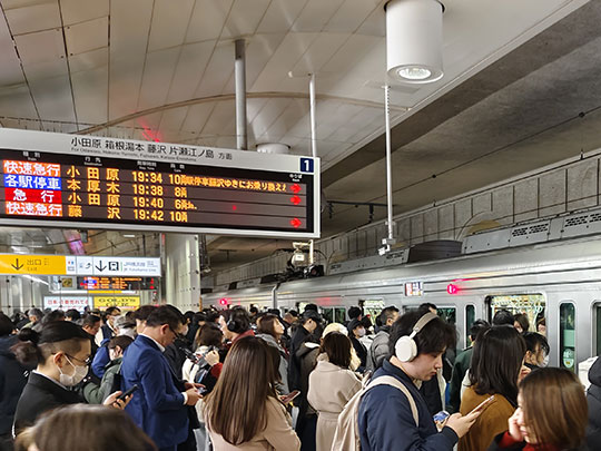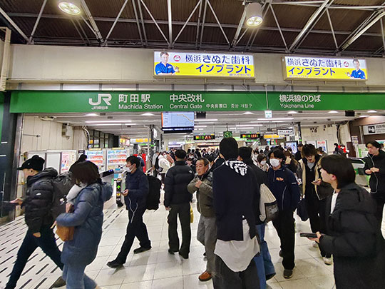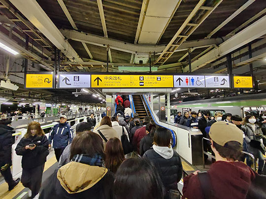 ภายในสถานีเต็มไปด้วยผู้คนเนืองแน่นมากมายสมเป็นโตเกียว ก็เบียดเสียดผู้คนนั่งรถไฟกลับ