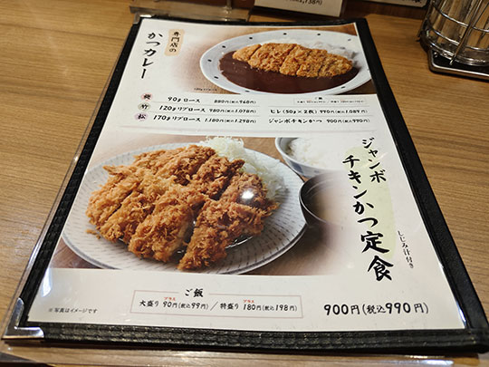 สั่งชุดจัมโบจิกิงกัตสึ (ジャンボチキンかつ) ๙๙๐ เยน