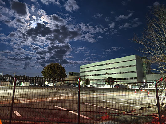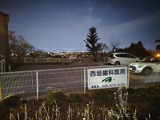 ตรงนี้เป็นคลินิก จากลานจอดรถมองไปไกลทางตะวันตกเห็นทิวทัศน์ย่านใจกลางเมืองด้วย